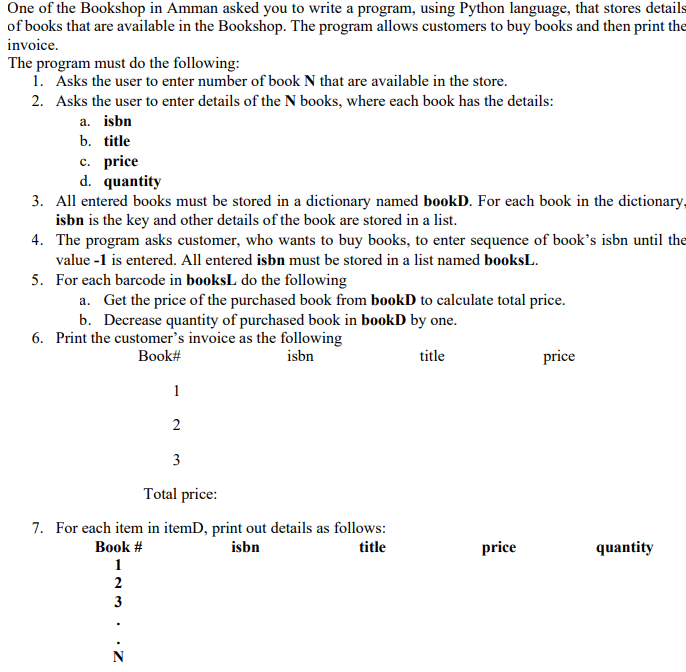 Solved One of the Bookshop in Amman asked you to write a | Chegg.com