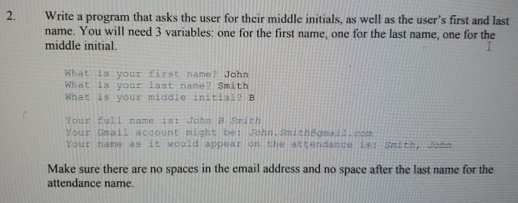 Solved 2. Write a program that asks the user for their | Chegg.com