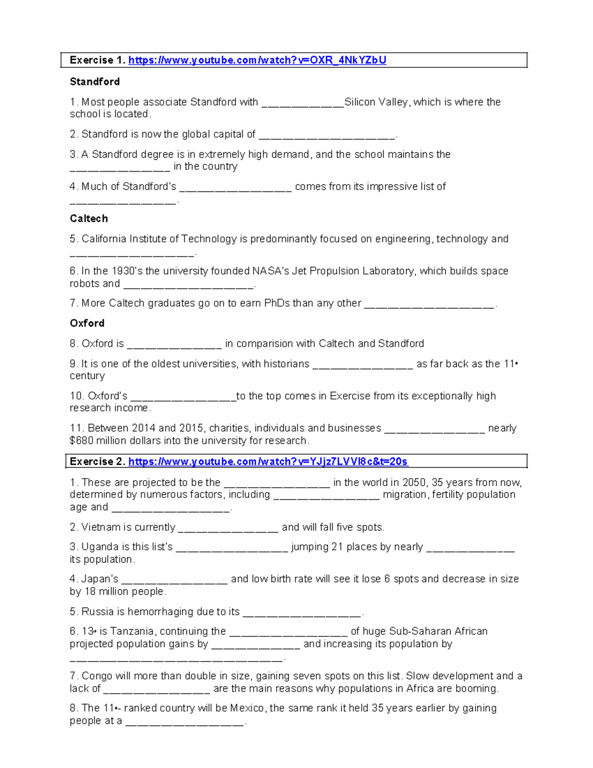 Read and complete with words from Exercise 1 - YouTube