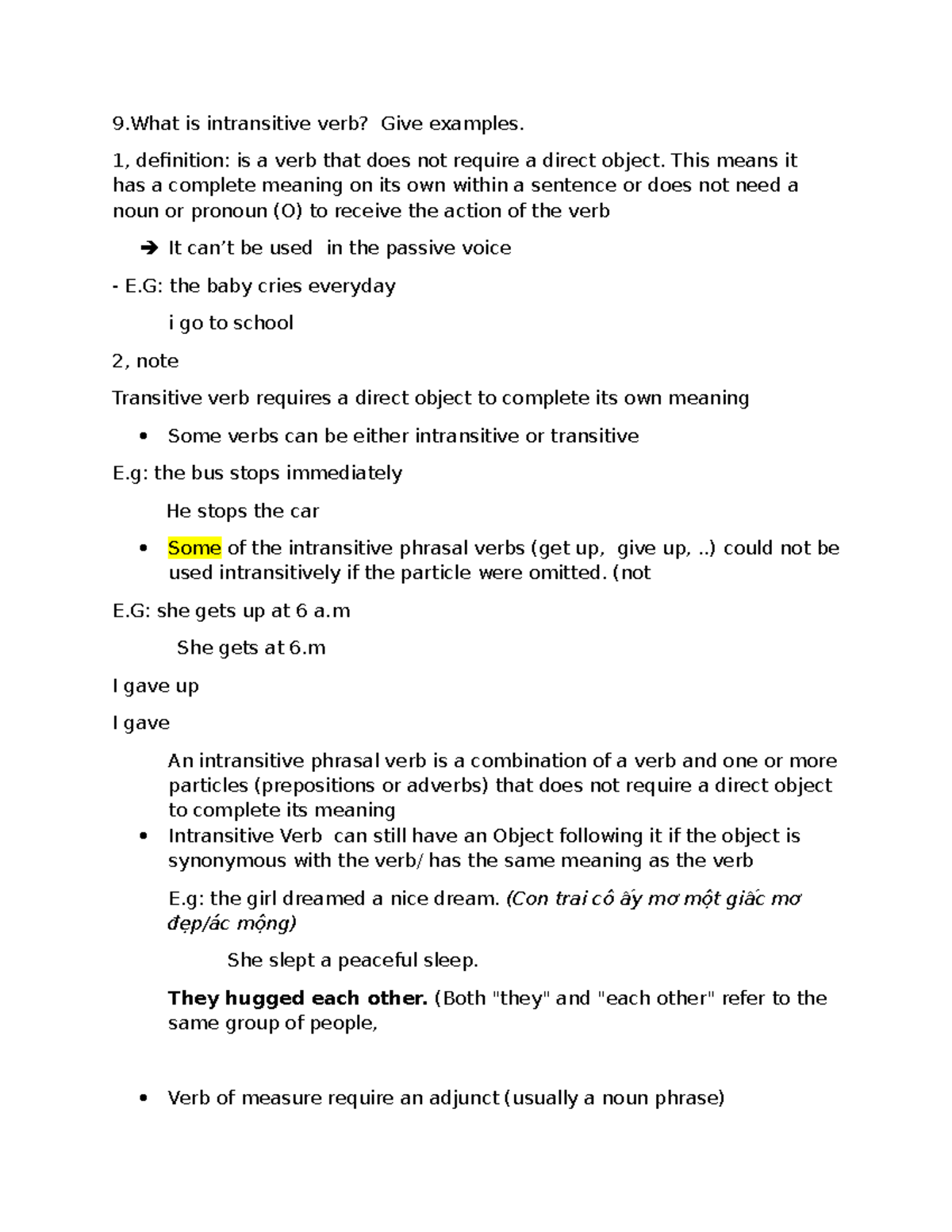 Grammar Present: Intransitive and Intensive Verbs Explained - Studocu
