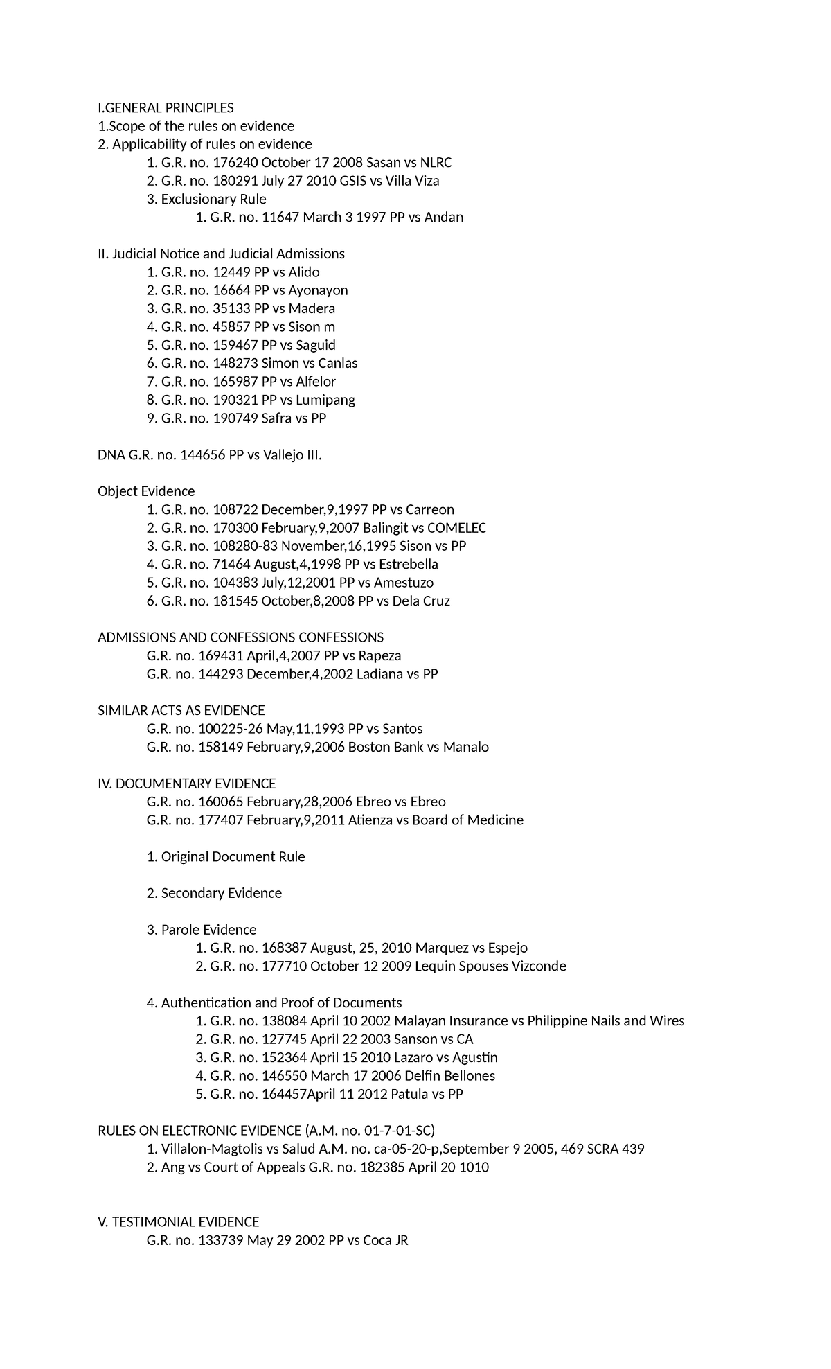 Case Digest on General Principles of Evidence (G.R. Cases) - Studocu