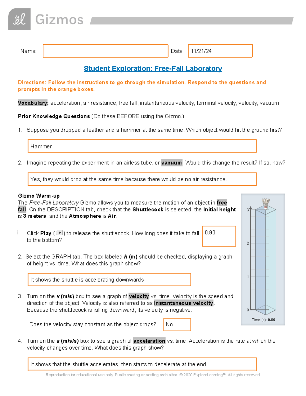 Free Fall SE Lab Directions: Exploring Motion & Acceleration - Studocu
