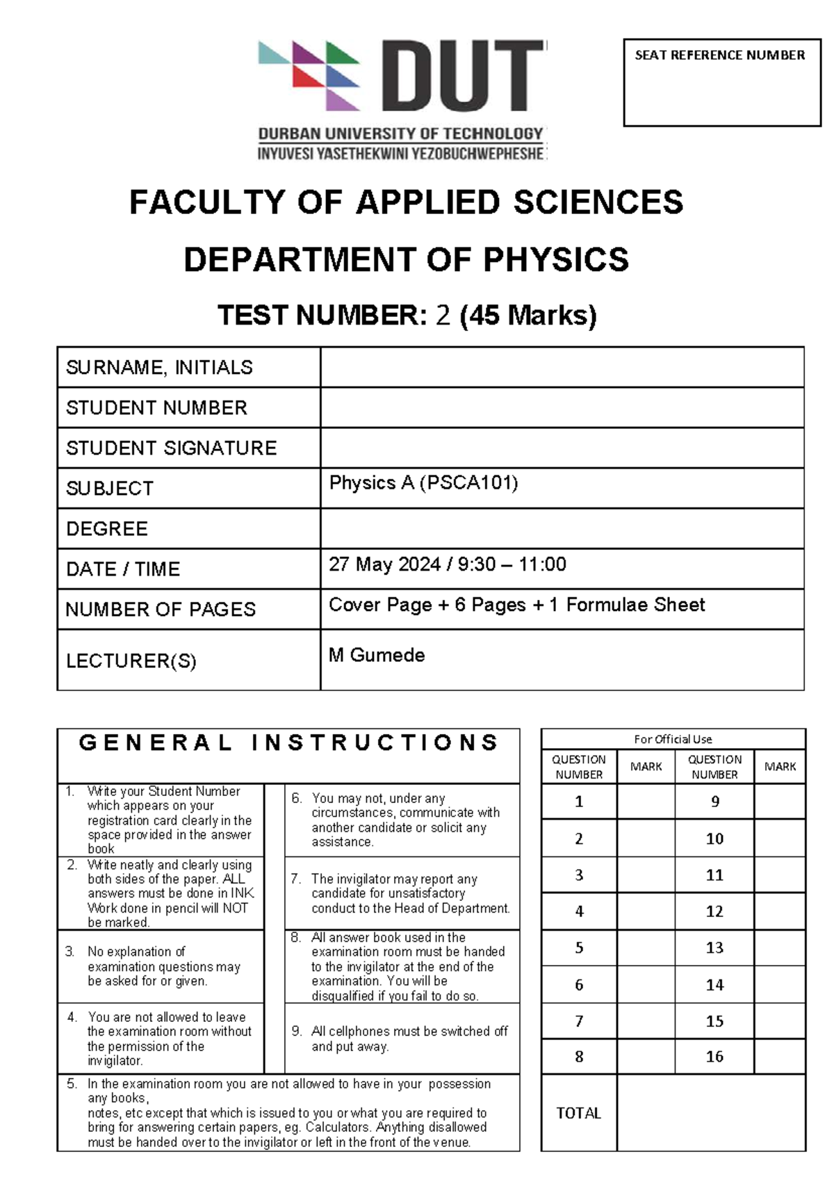 PSCA101 Physics A Test 2 Study Guide - May 2024 - Studocu