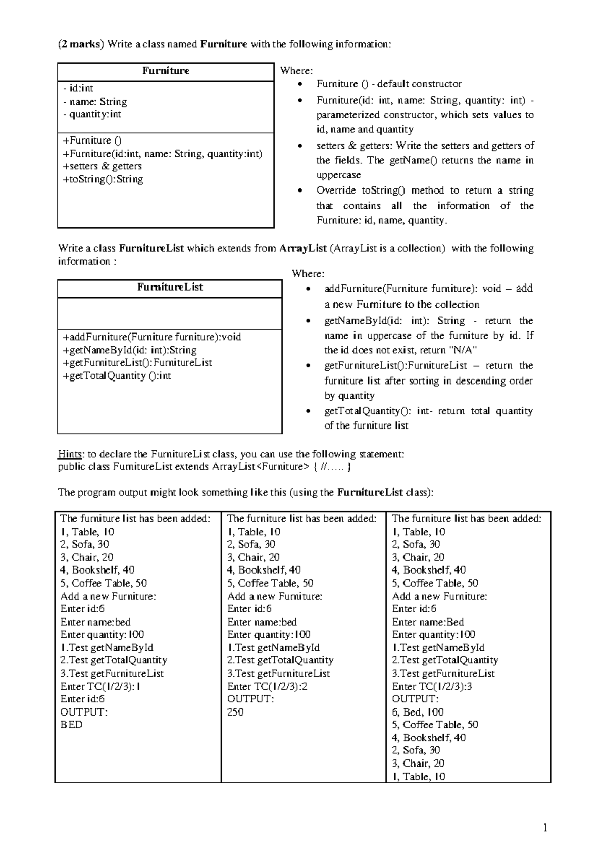 Assignment: PE Test - Furniture Class Implementation (CS101) - Studocu
