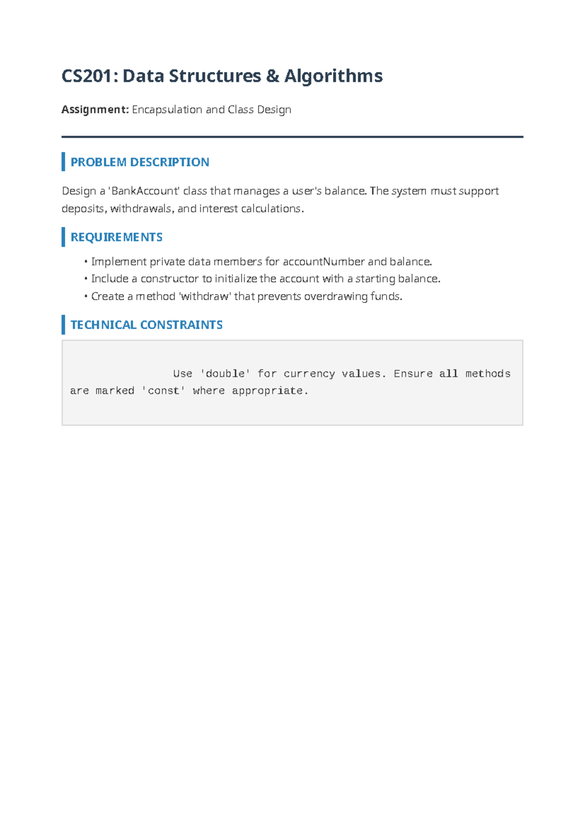 Assignment 1 Banking - CS201: Data Structures & Algorithms Assignment ...