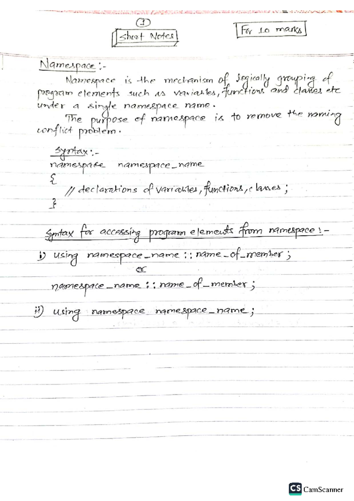 C++ Short Notes: Key Concepts for Programming (CS101) - Studocu