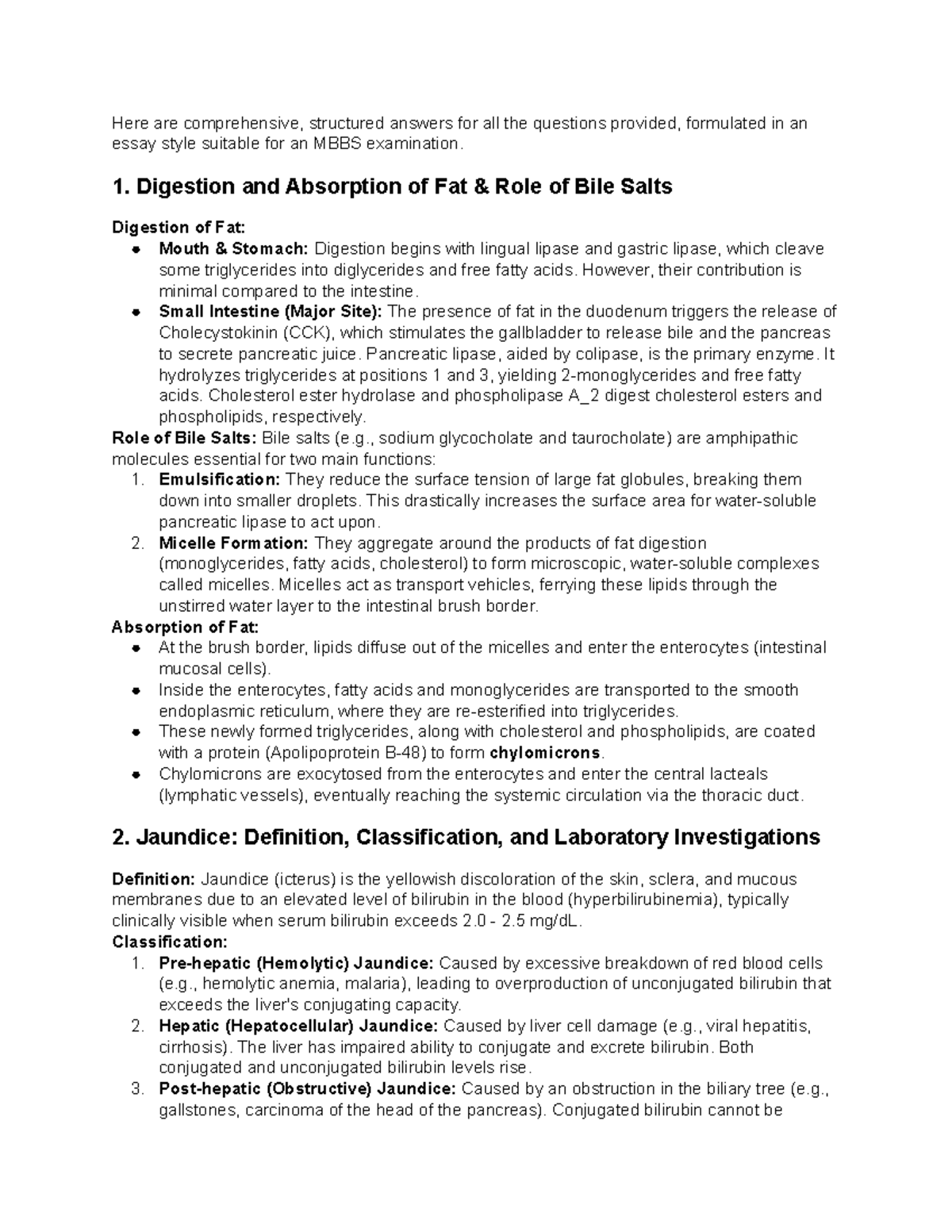 MBBS GIT Anatomy: Comprehensive Essay Answers for Exam - Studocu