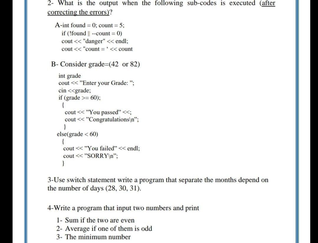 Solved Q.2) Find the output of given Program code, also | Chegg.com