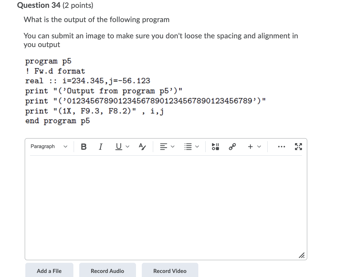 Solved Question 34 (2 points) What is the output of the | Chegg.com
