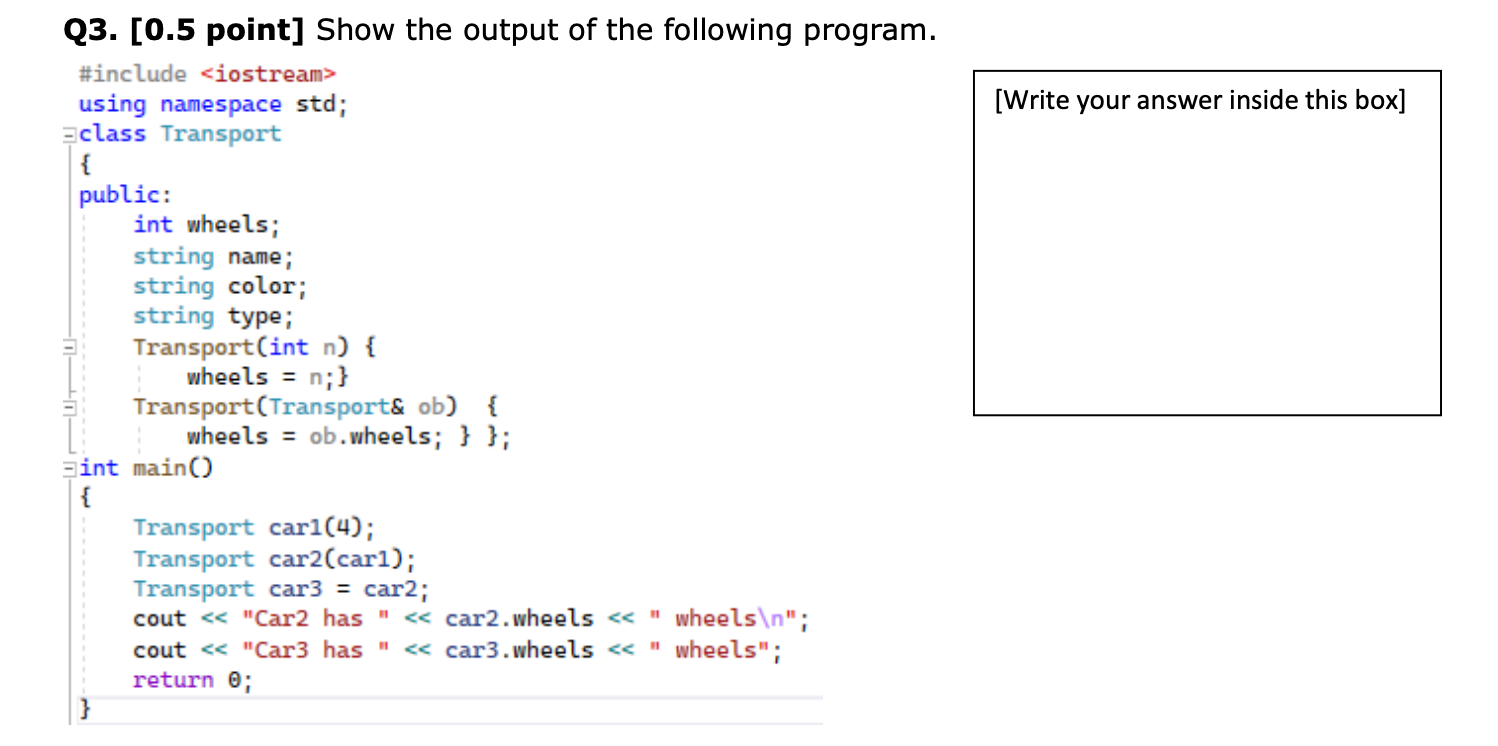 Solved Q3. [0.5 point ] Show the output of the following | Chegg.com