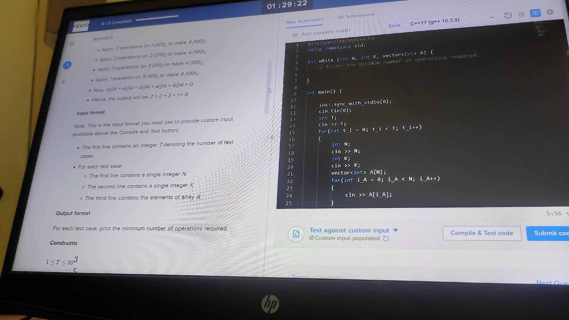 Solved Question 1 - N=5 [2] Test against custom input ∇ - | Chegg.com