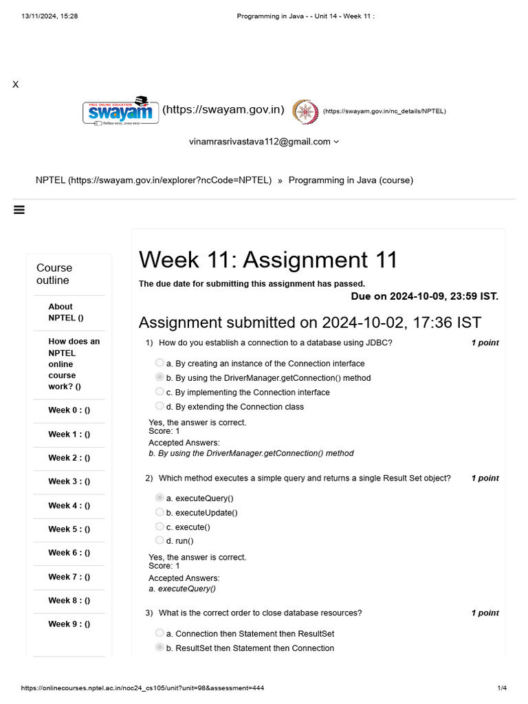 Programming in Java - Unit 14 - Week 11 | PDF | Databases | Software ...