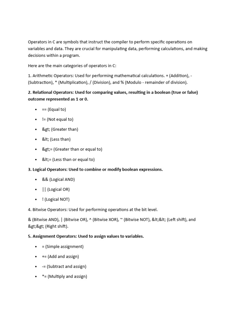 Understanding Operator Precedence and Associativity in C | Course Hero