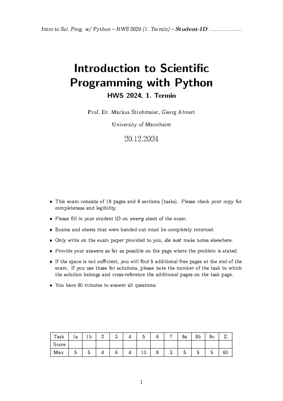 Intro to Sci. Prog. Python HWS 2024 - Exam 1 Overview and Tasks - Studocu