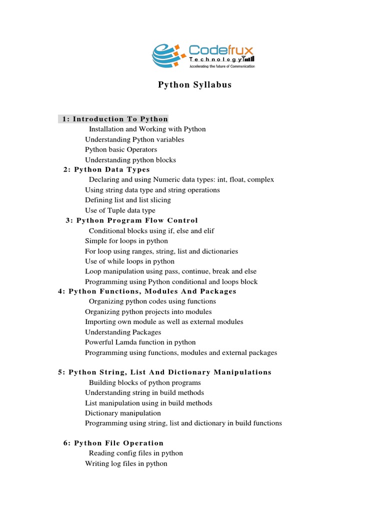 Python Syllabus For Placement at William Bowles blog