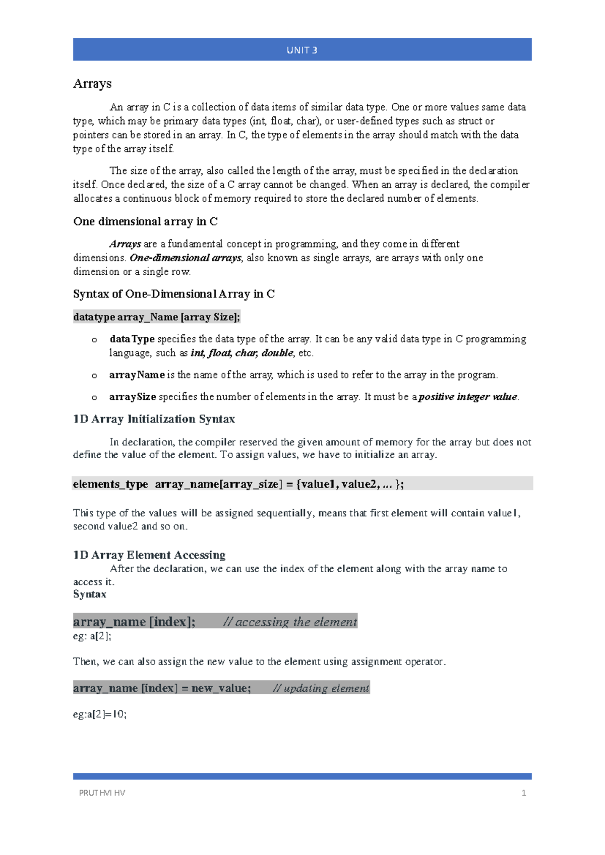 UNIT-5 Concepts of Arrays and Pointer | PDF | Teaching Methods & Materials