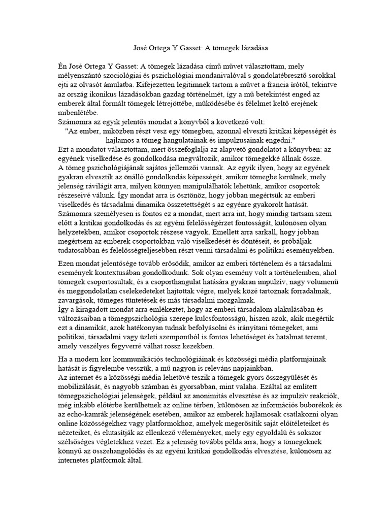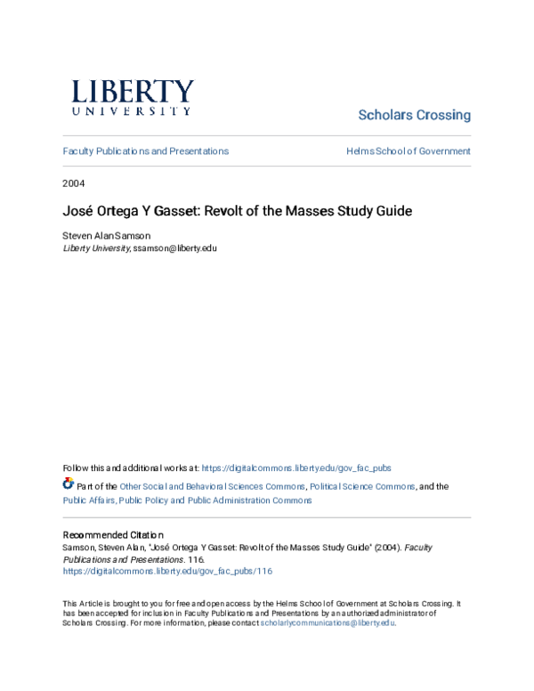(PDF) José Ortega Y Gasset: Revolt of the Masses Study Guide