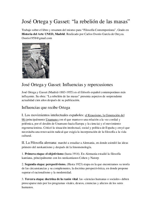 Investigacion Sobre Ortega Y Gasset TRABAJO | PDF | Realismo filosófico ...