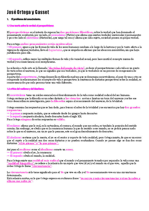 Filosofía de Ortega: Raciovitalismo y Perspectivismo | PDF | Razón | Verdad