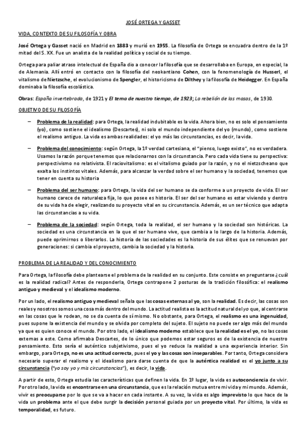Vida y Filosofía de Ortega y Gasset | PDF | Realidad | Realismo filosófico