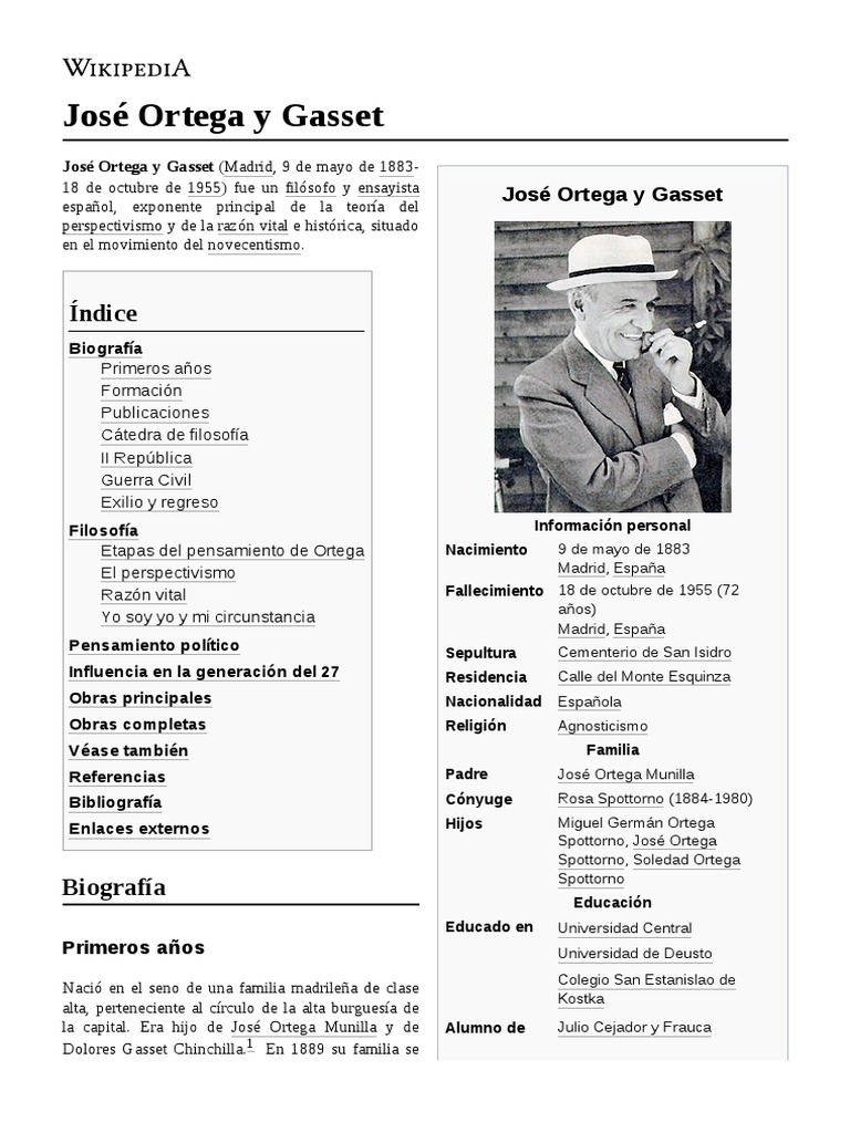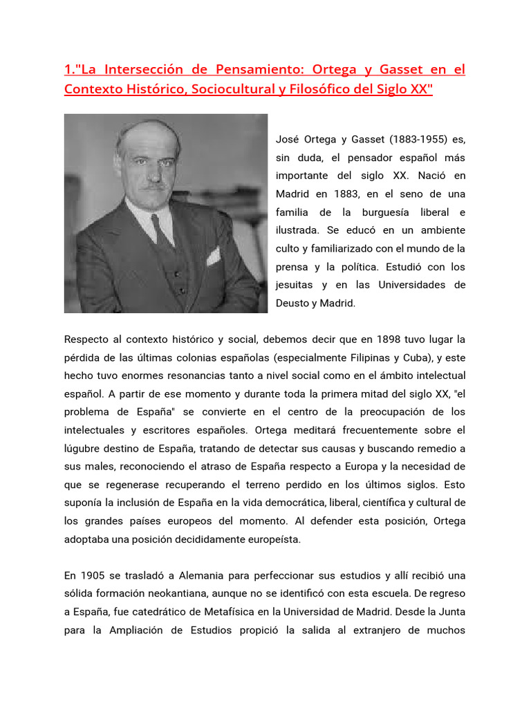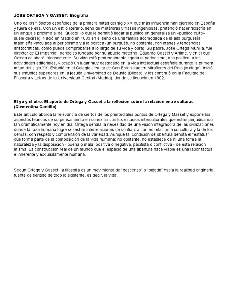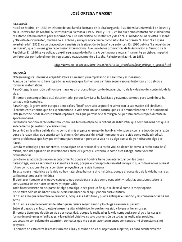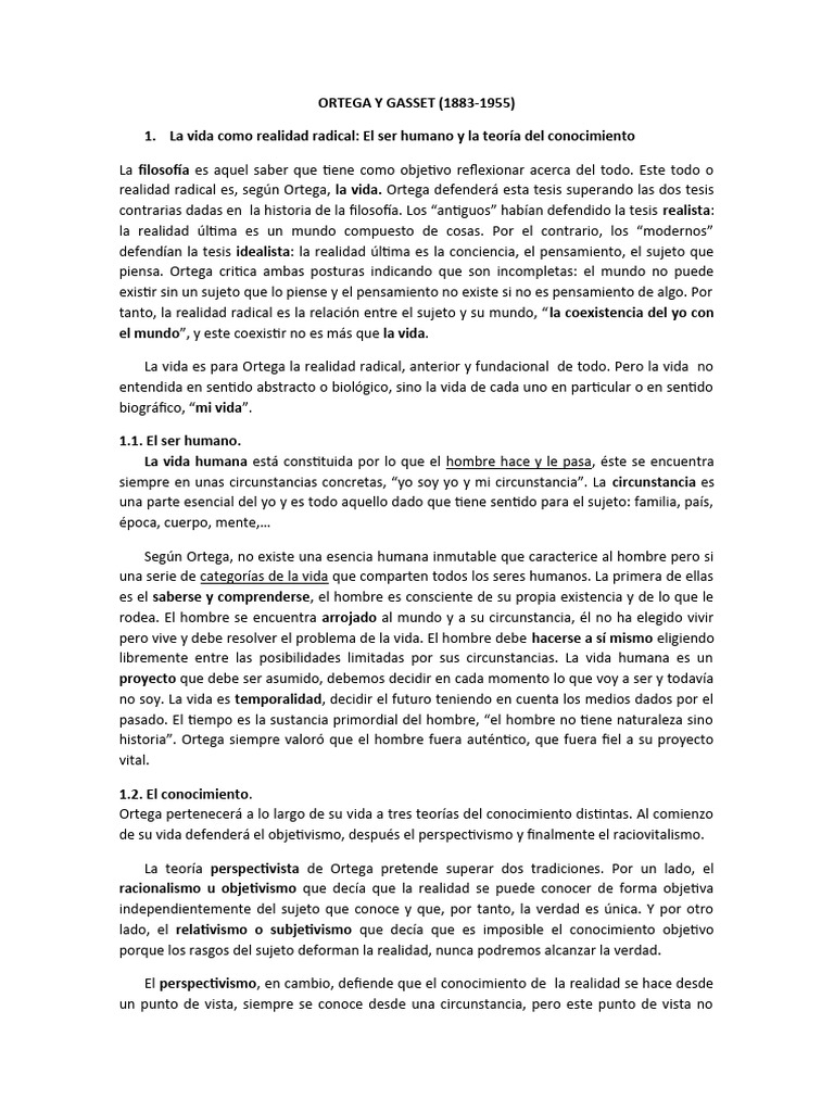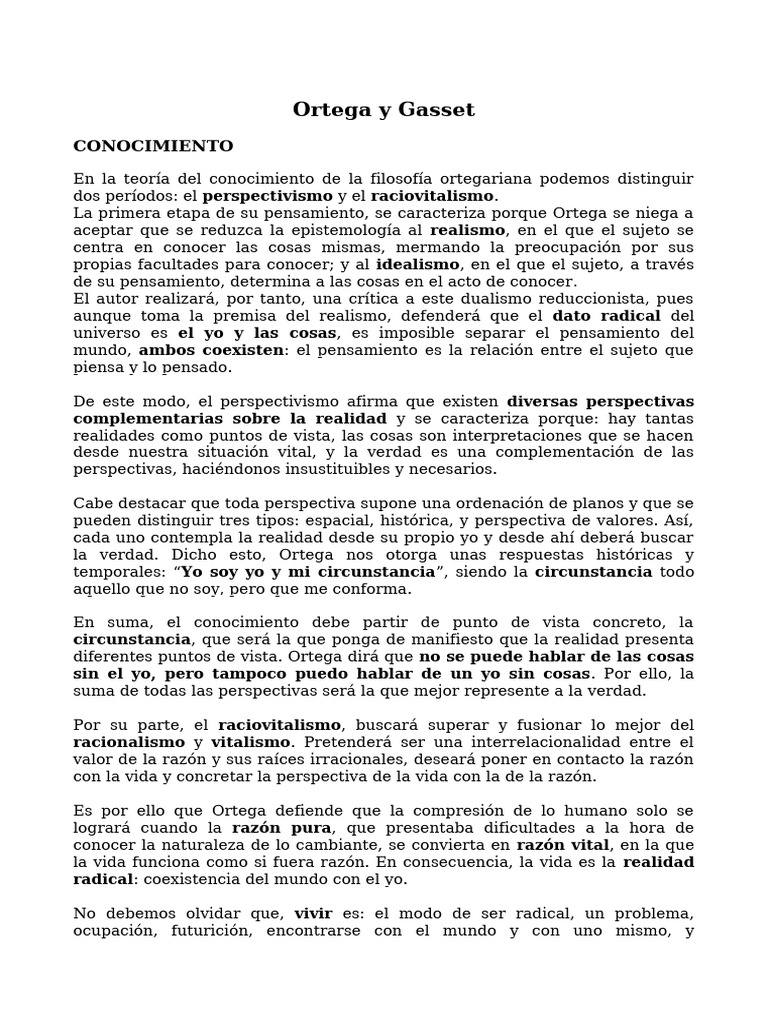 Biografía y filosofía de Ortega y Gasset | PDF | Realidad | Realismo ...