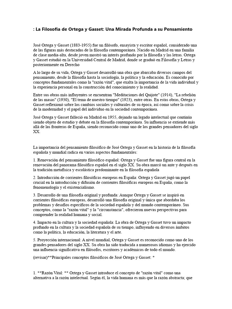 José Ortega y Gasset: Filosofía y Legado | PDF | Sociedad | Razón