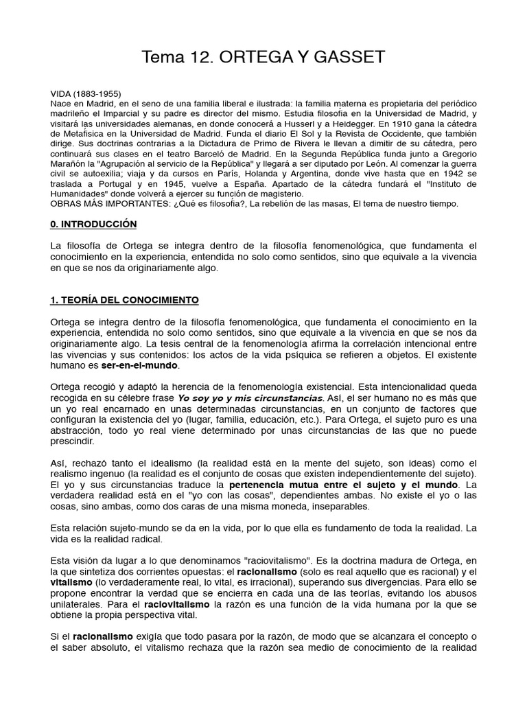 Tema 12 - Ortega y Gasset | PDF | Razón | Realidad