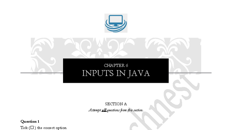 CHAPTER 6: INPUTS IN JAVA - SECTION A QUESTIONS & ANSWERS - Studocu