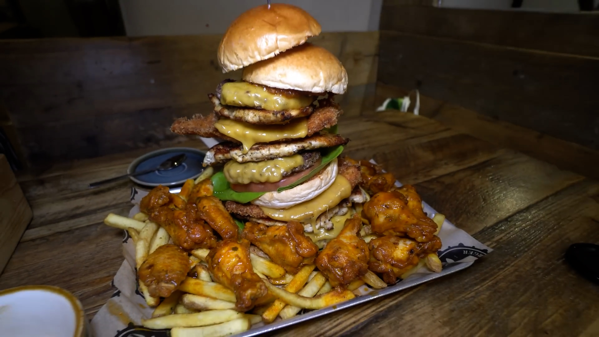 Man attempts undefeated burger challenge with wings and fries in 30 minutes
