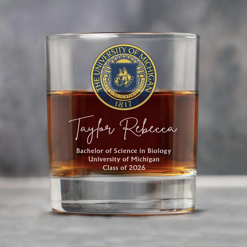 Custom College Logo Graduation Whiskey Glass - Personalized Grad Glass ...