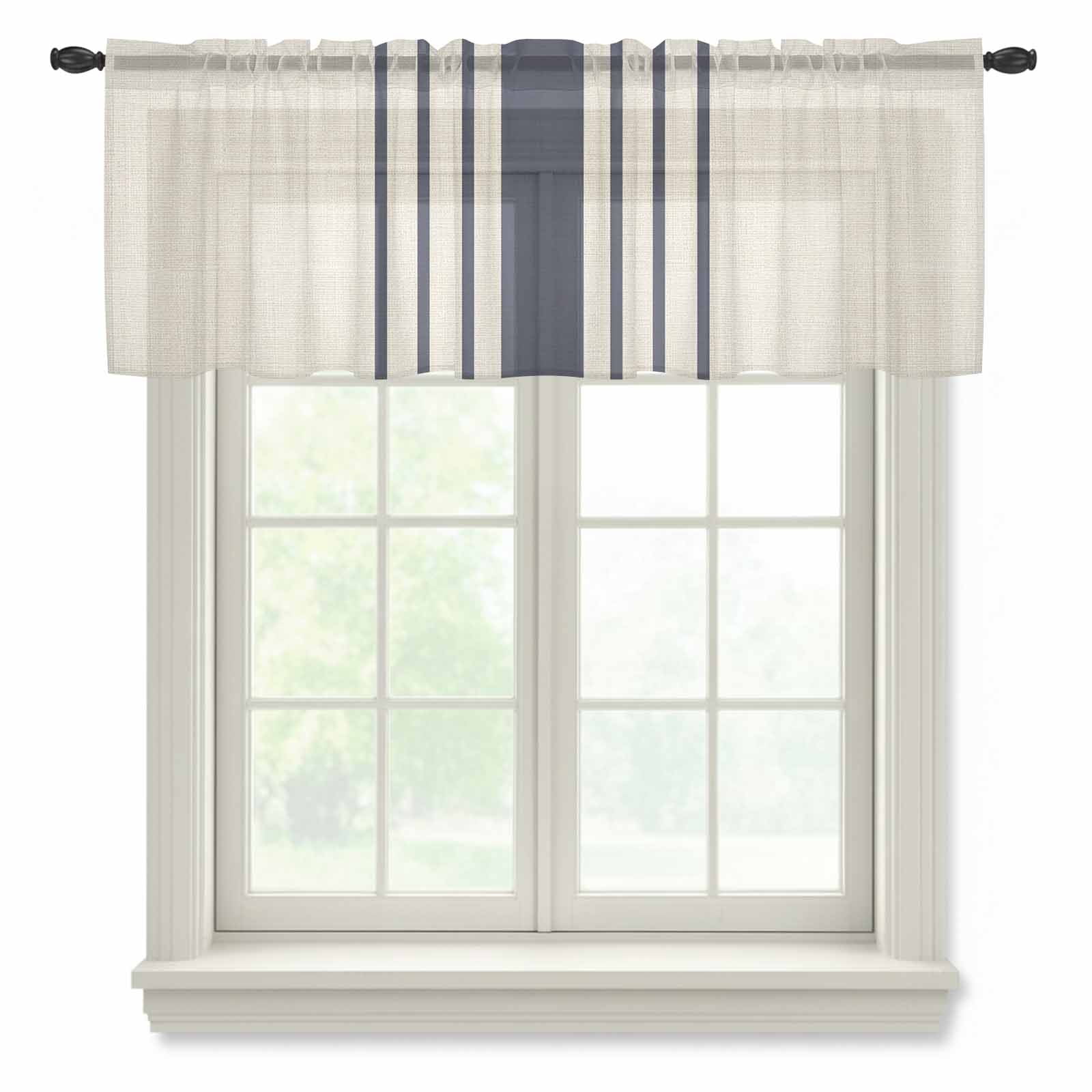 Blue Striped Semi Sheer Valance Curtains Simple Brown Linen Texture ...