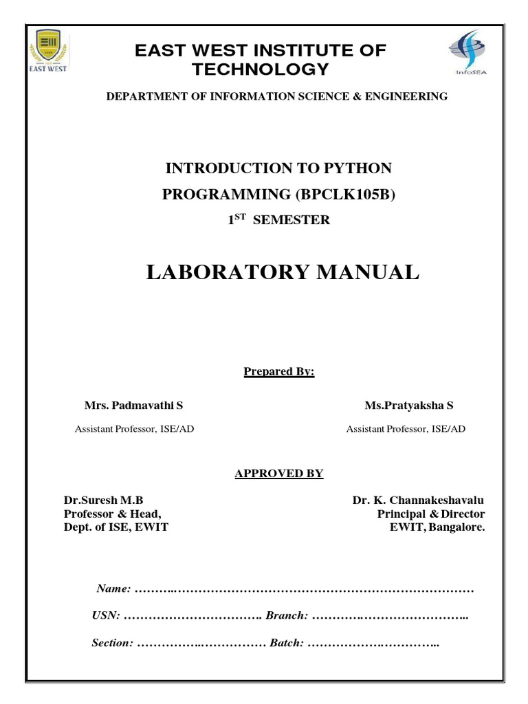 Python Lab Manual - Introduction to Python Programming (PROGRAM 1-10 ...