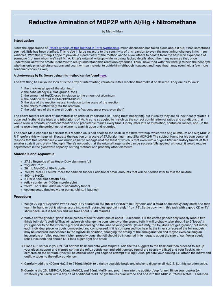 Reductive Amination of MDP2P With Al HG + Nitromethane | PDF | Sodium ...