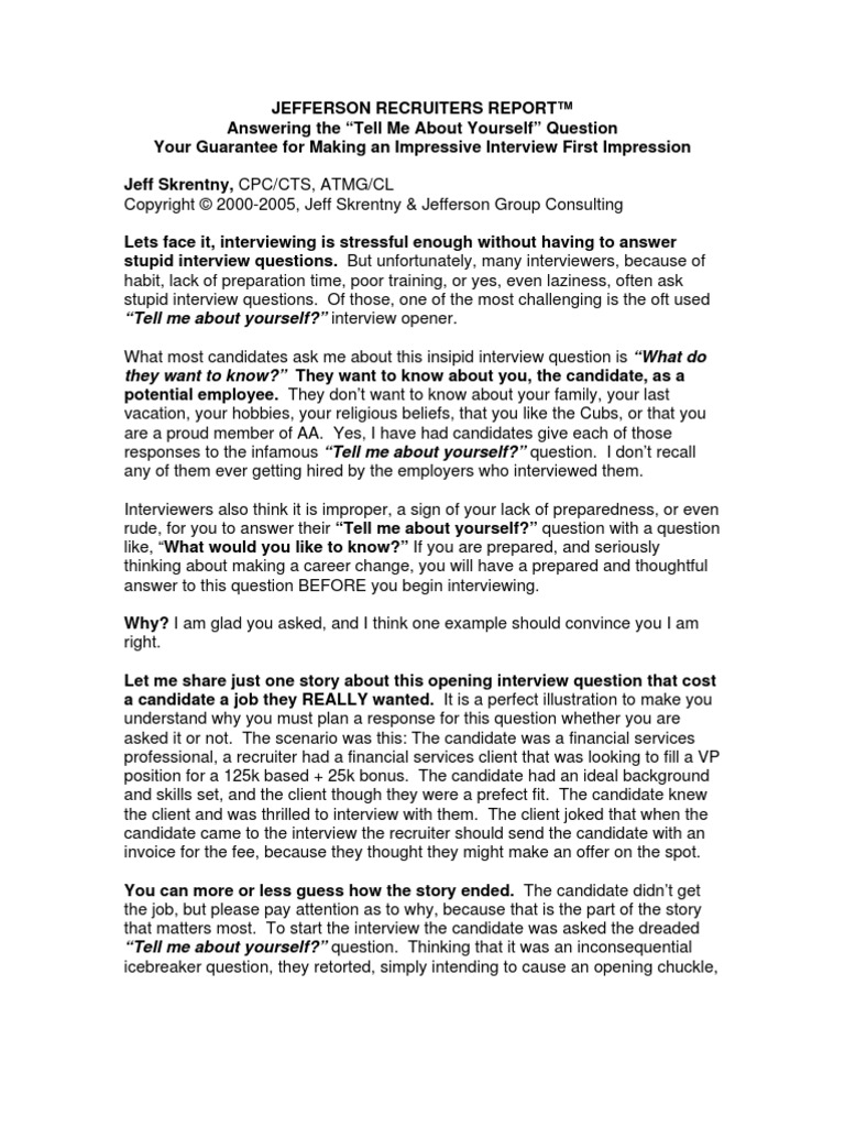 Tell Me About Yourself In USA | brunofuga.adv.br