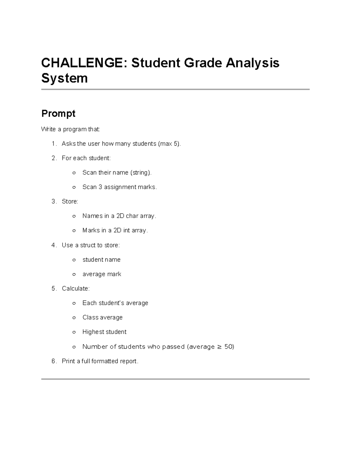 Coding Challenge: Student Grade Analysis System (Max 5 Students) - Studocu