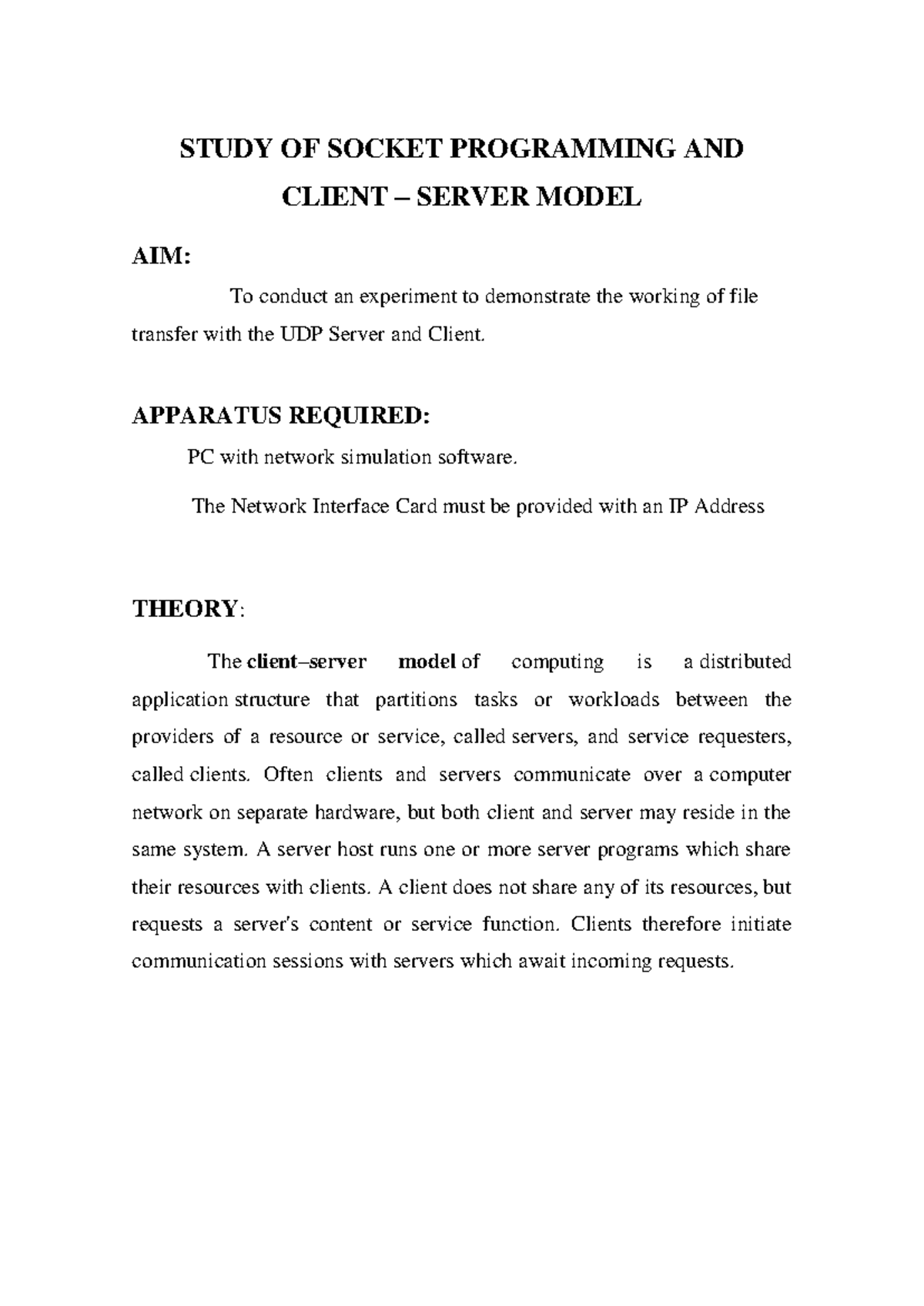 Experiment 6 Socket Programming - Experiment 7 Introduction to Socket ...
