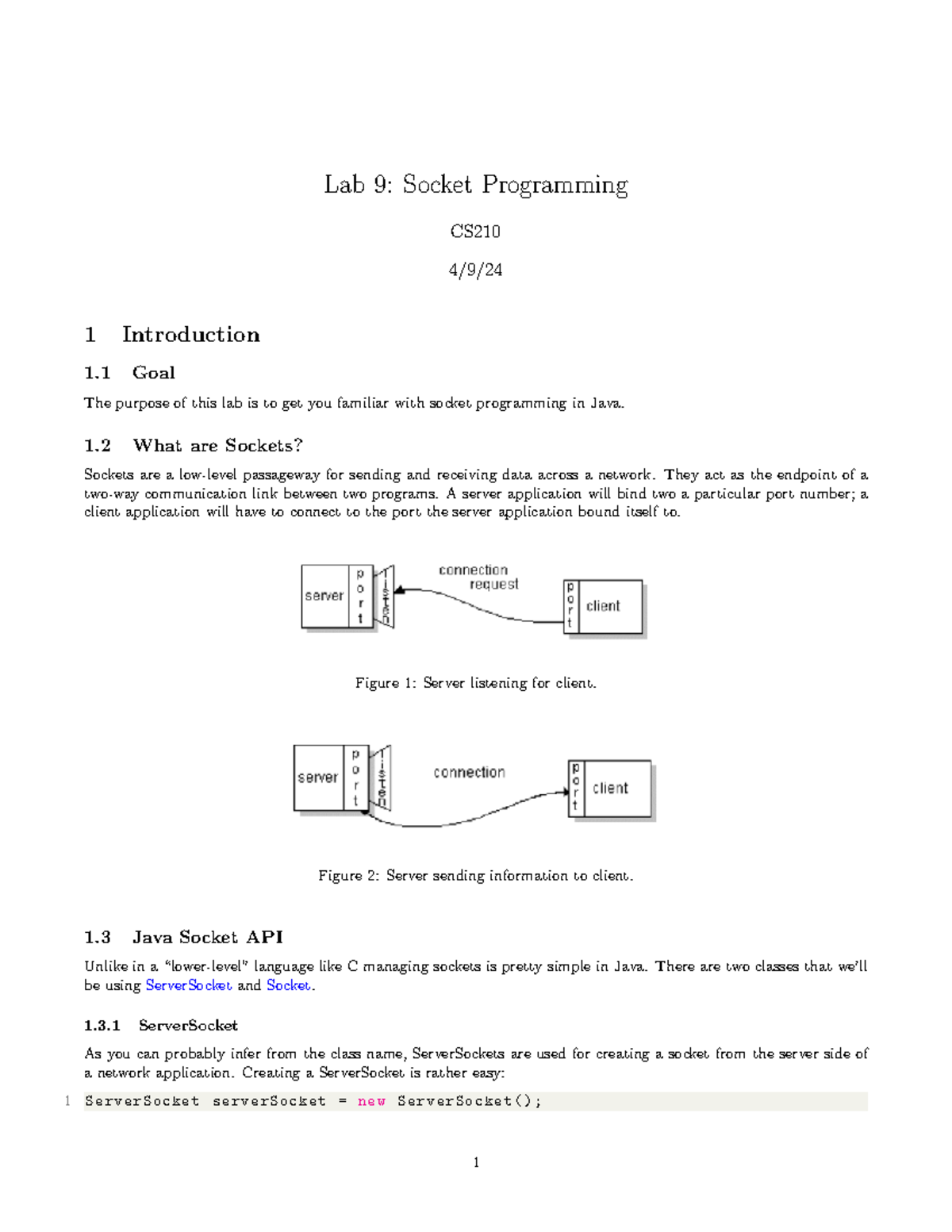 Lab 2c Socket Programming in Java - Computer Networks 1 Lab 4 Socket ...