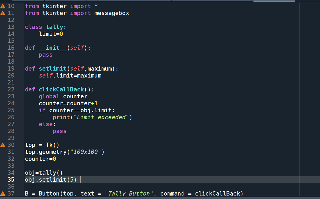 Based on this image's title: “Solved In PYTHON Tally Counter Application Finish coding the | Chegg.com”