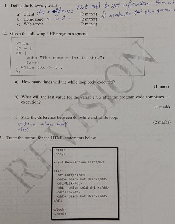 Solved 1. Define the following terms : c) Web server (2 | Chegg.com