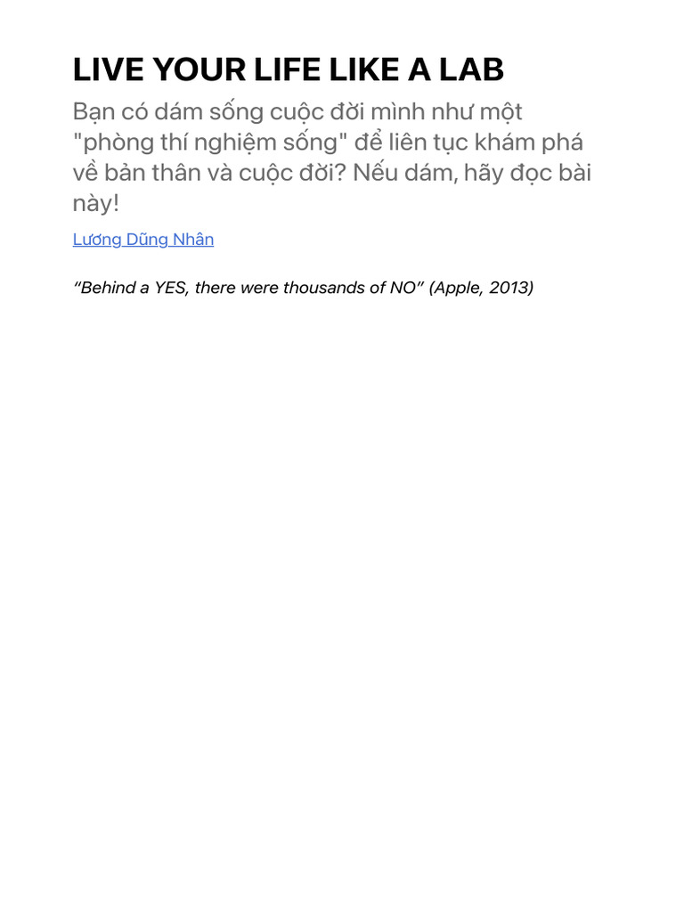 LIVE YOUR LIFE LIKE A LAB - by Lương Dũng Nhân - Learnacy | PDF