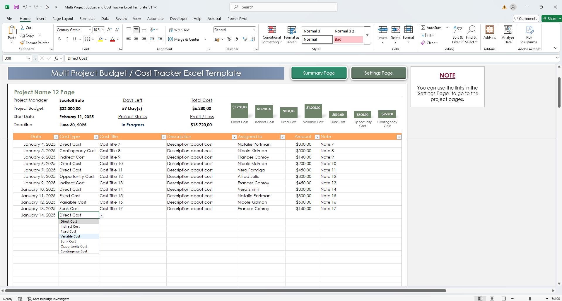 Multi Project Budget Tracker Excel Template – Track Costs, Expenses ...