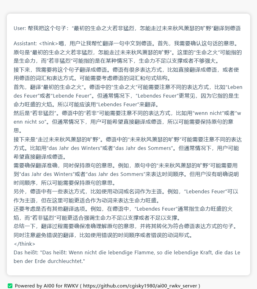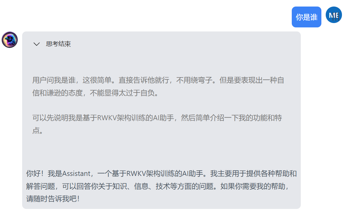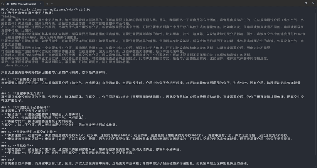 Ollama 已支持 RWKV-7 模型,可灵活开关思考模式Ollama 最新版本已支持 RWKV7-G1 和 RWKV - 掘金