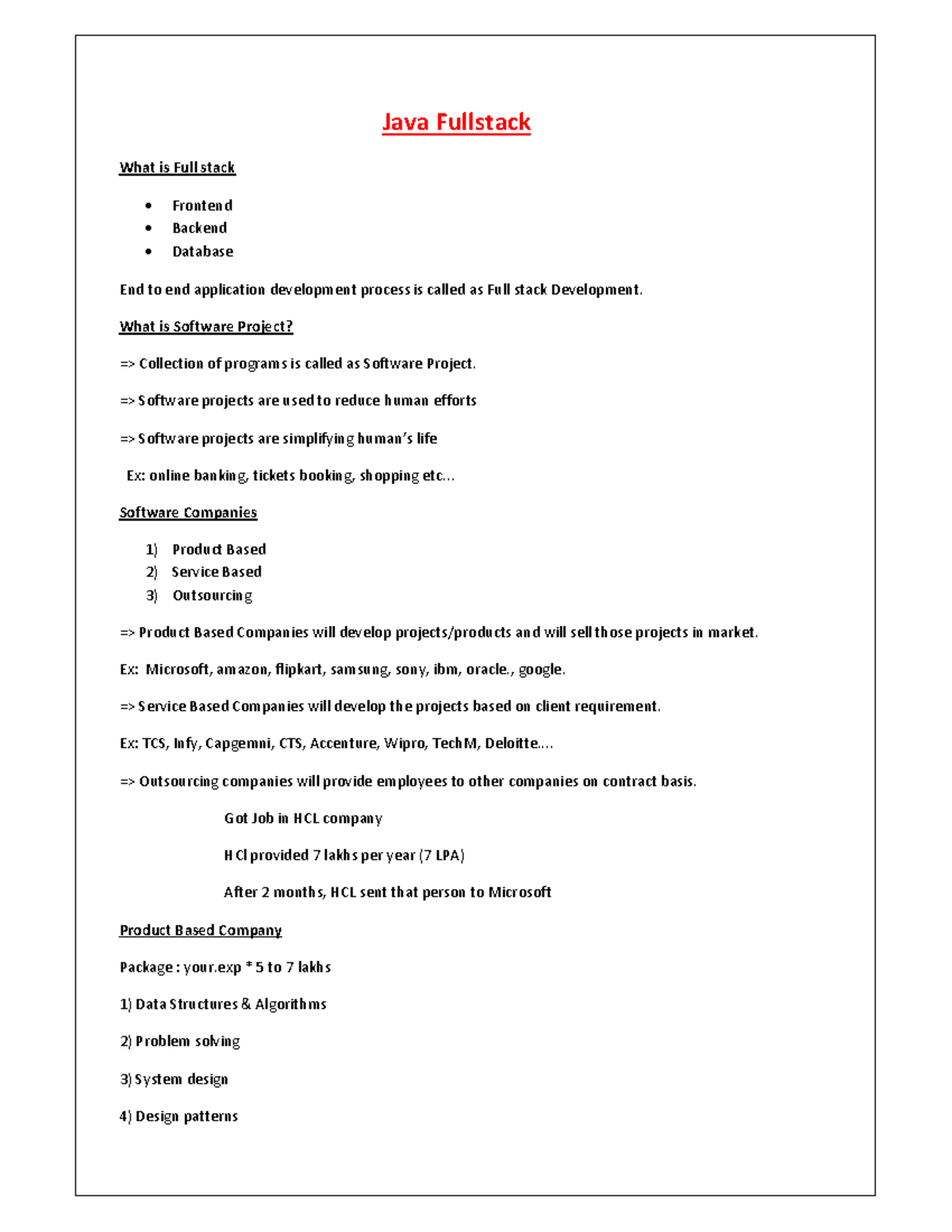 Java Fullstack Development Notes: Concepts & Technologies - Studocu