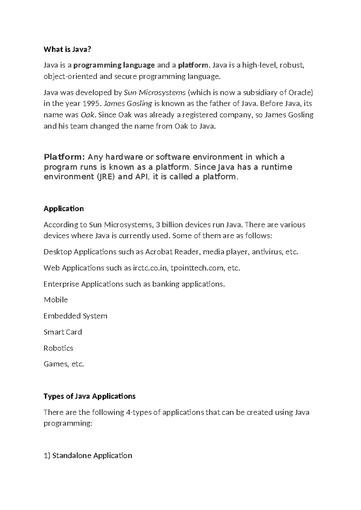 L 1 - Java Programming Language Overview and Applications - Studocu