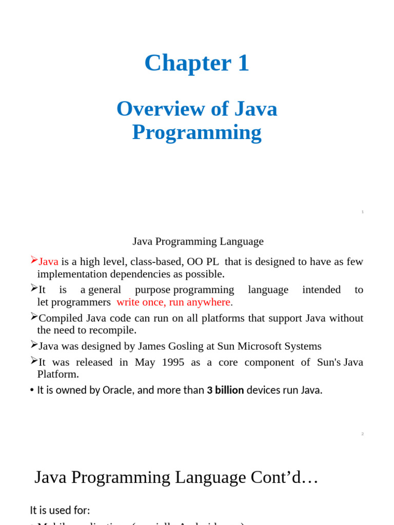 Chapter 1 - Overview of Java Programming | PDF | Java (Programming ...