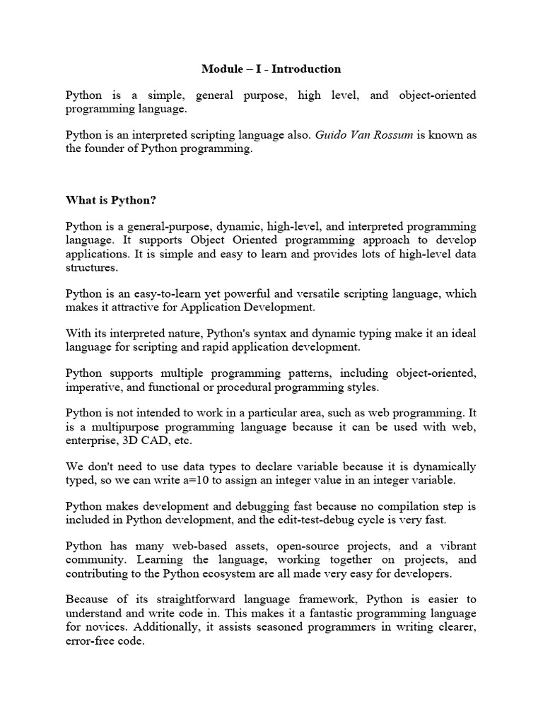 Python Module-1 | PDF | Python (Programming Language) | Computer ...