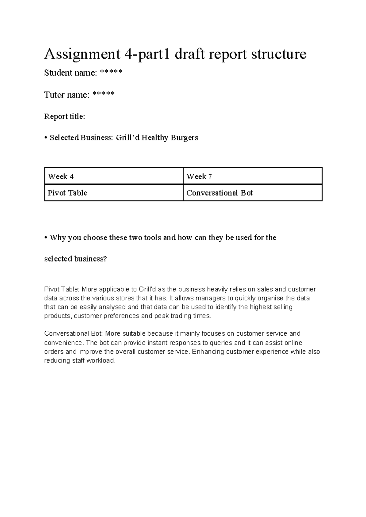 Assignment 4: Report on Tools for Grill'd Business Analysis - Studocu