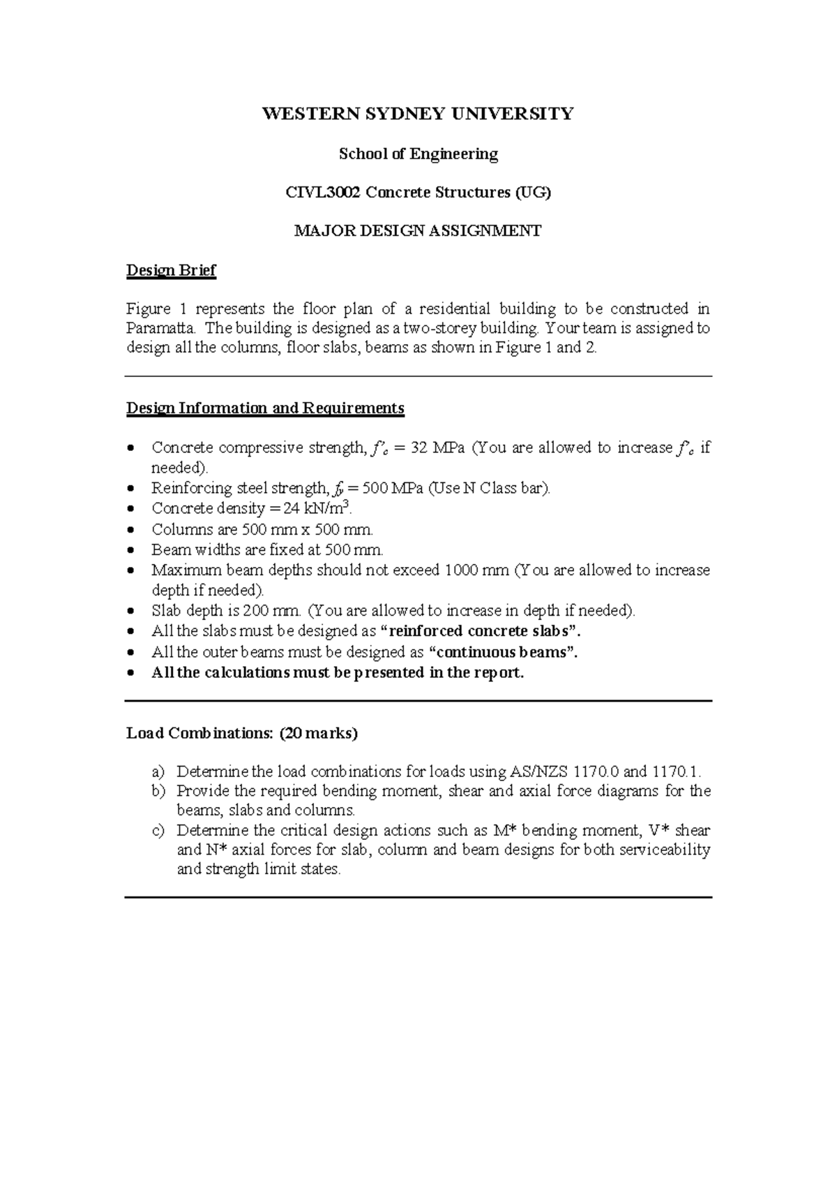 CIVL3002 Major Design Assignment: Concrete Structures Design Brief ...