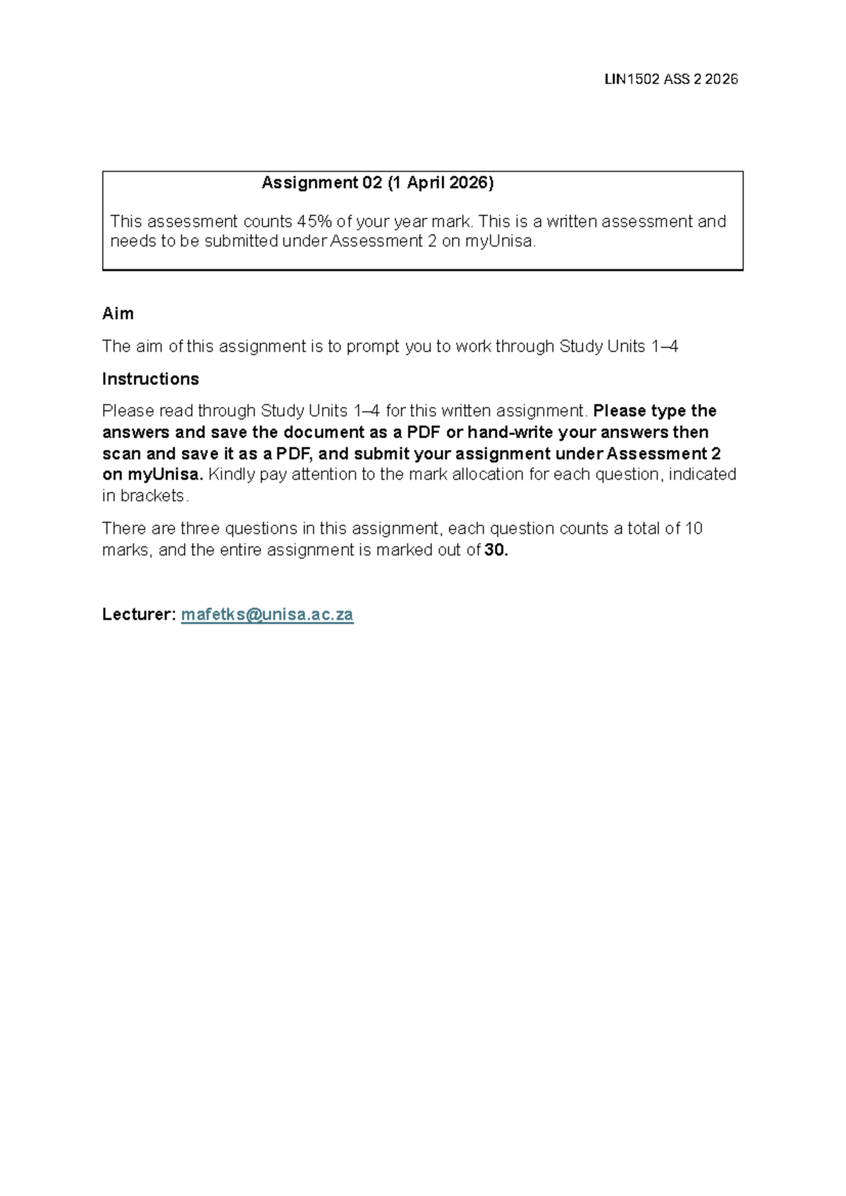 LIN1502 ASS 2 2026 - Written Assignment - Studocu