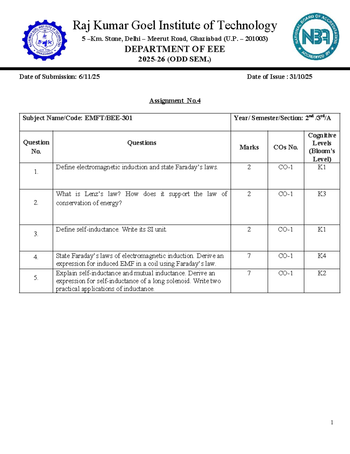 EMFT Assignment 4 - Electromagnetic Induction Notes - Studocu